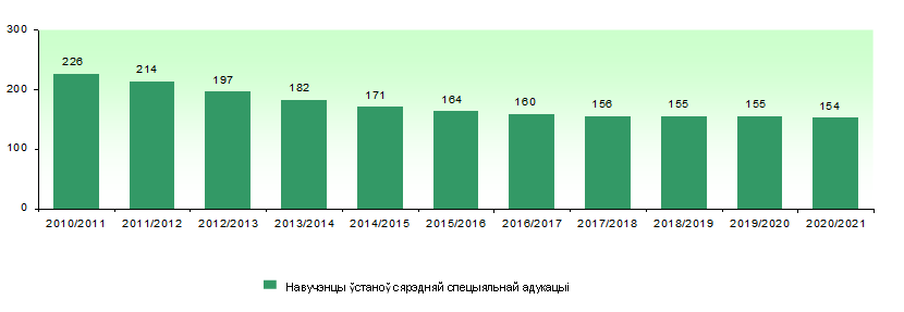 Колькасць навучэнцаў ва ўстановах сярэдняй спецыяльнай адукацыi на 10 000 чалавек насельнiцтва*