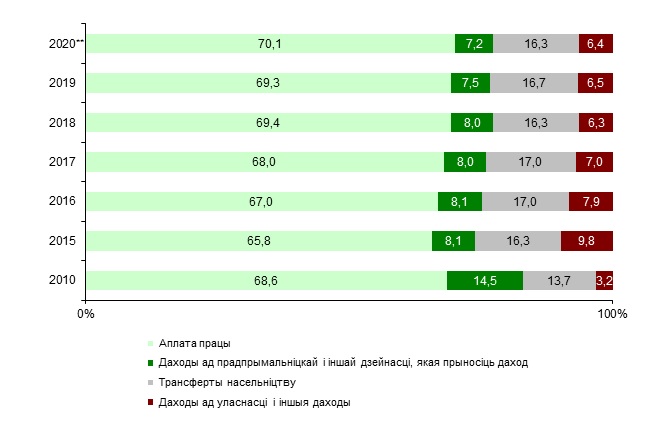 * З 2014 года зменена метадалогія фарміравання асноўных артыкулаў грашовых даходаў насельніцтва; з 2016 года – метадалагічныя падыходы Нацыянальнага банка Рэспублікі Беларусь да ацэнкі артыкула плацёжнага балансу Рэспублікі Беларусь «Асабістыя трансферты».