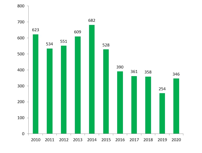Увод у эксплуатацыю жылых дамоў на 1000 чалавек насельніцтва