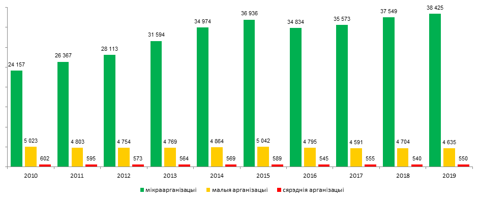 Дынаміка колькасці мікраарганізацый, малых і сярэдніх арганізацый