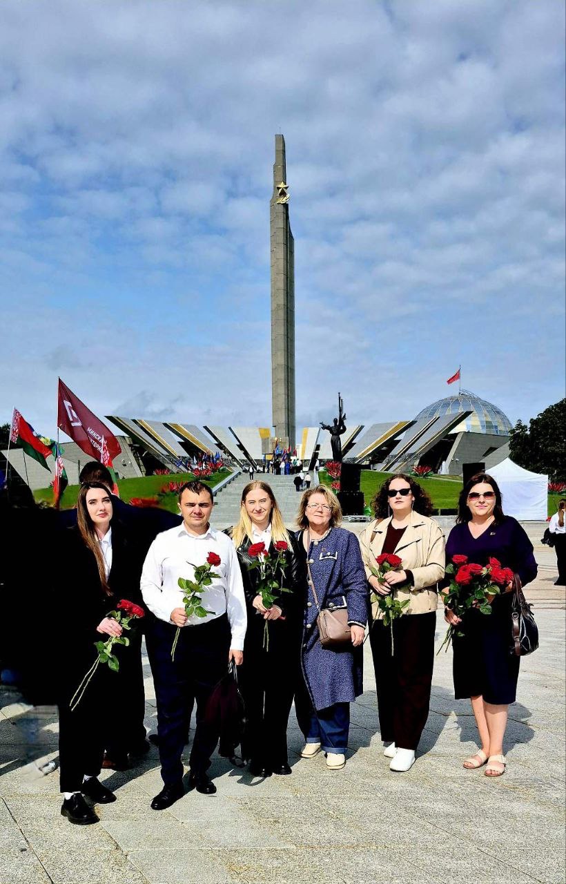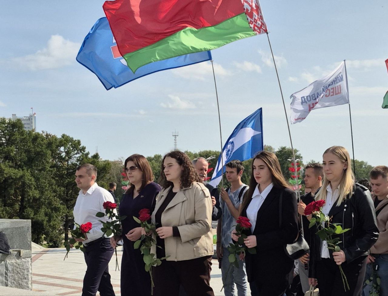 Ну а началось в Минске празднование Дня города с торжественной церемонии возложения цветов к обелиску «Минск - город-герой». Среди участников церемонии от Главного статуправления города Минска был первый заместитель начальника Елена Павлюкович, руководители структурных подразделений, общественный актив и представители молодежи.