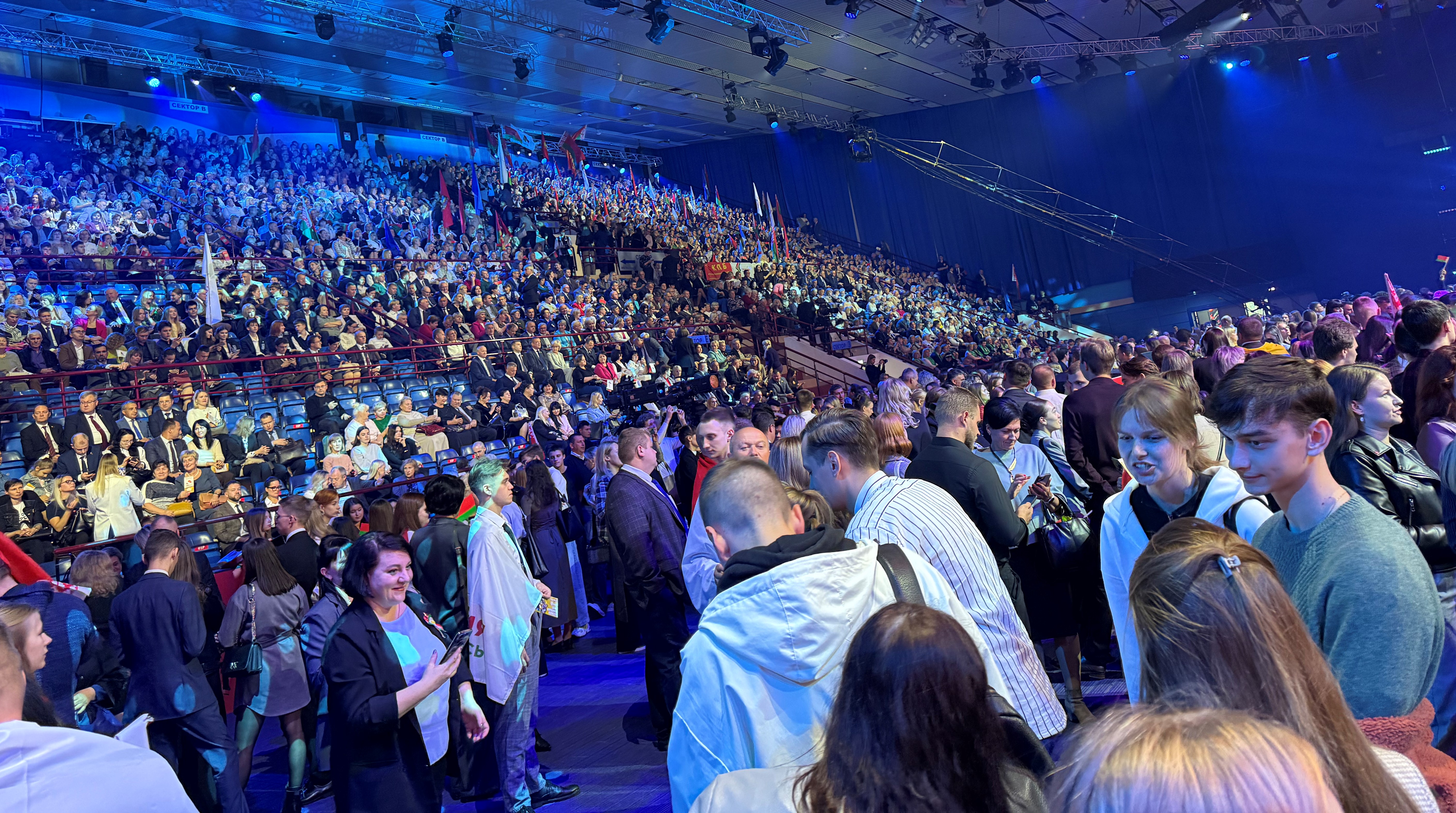 На несколько часов центром притяжения неравнодушных белорусов в Минске стал Дворец спорта. На форум, посвященный Дню народного единства и организованный ведущими общественными организациями и политическими партиями, которые объединились в штаб патриотических сил, съехались со всей страны тысячи участников. Были среди них и статистики города Минска.
