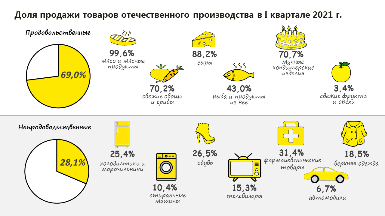 Доля продажи товаров отечественного производства в I квартале 2021 г.