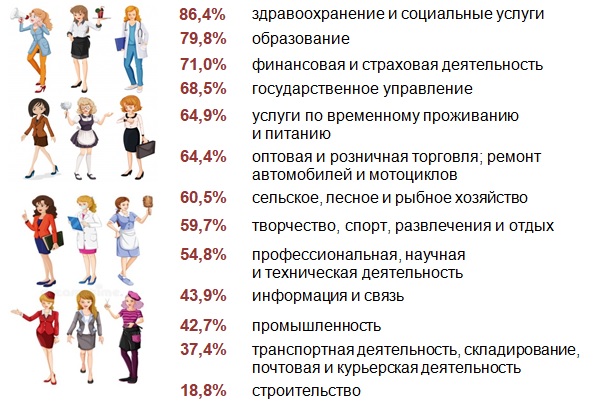 По итогам переписи населения 2019 года, высшее образование в столице имели 347,7 тыс. женщин, среднее специальное – 197,2 тыс. женщин, профессионально-техническое – 113,7 тыс. женщин.