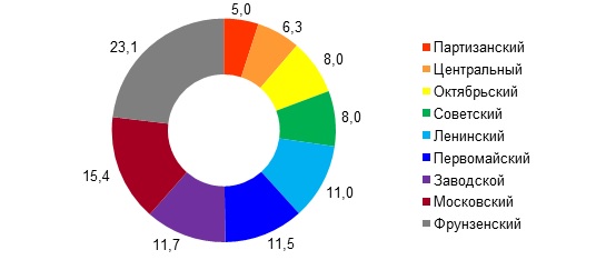 Численность женщин г.Минска по районам