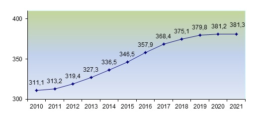 На 1 января 2021 г. в г.Минске проживало 381,3 тыс. детей в возрасте 0-17 лет, в том числе 194,9 мальчиков и 186,4 девочек. По сравнению с началом 2010 года численность детей увеличилась на 70,2 тыс. человек, или на 22,6%.