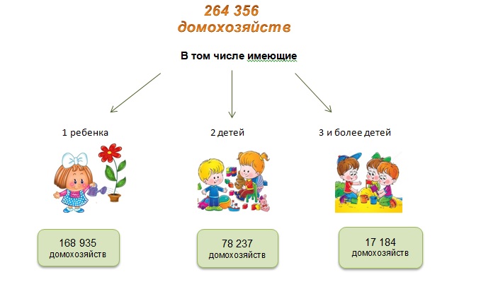 По данным переписи населения Республики Беларусь 2019 года, в г.Минске насчитывалось 264,4 тыс. домохозяйств, имеющих в своем составе детей моложе 18 лет.