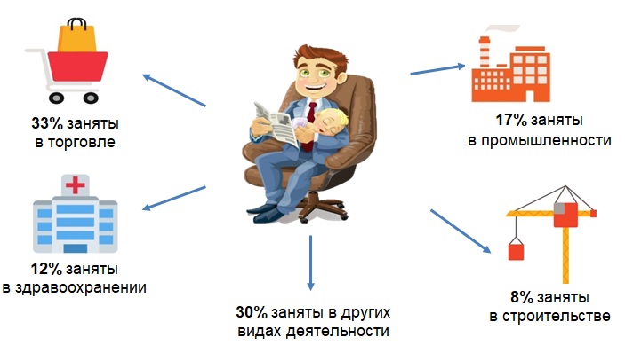 Сферы деятельности с наибольшей долей работающих мужчин