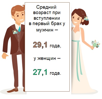 В 2020 году с женихами моложе 31 года было заключено 52,6% от всех браков столицы, с невестами до 31 года – 62,4 % браков.