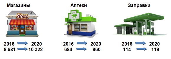 Динамика роста количества розничных торговых объектов в г.Минске в 2016-2020 гг.
