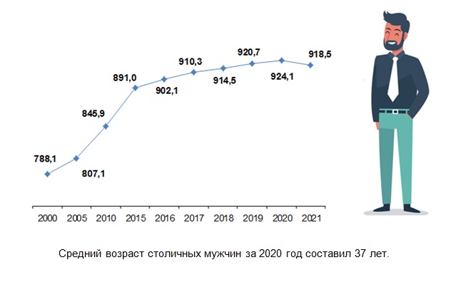 Средний возраст столичных мужчин за 2020 год составил 37 лет.